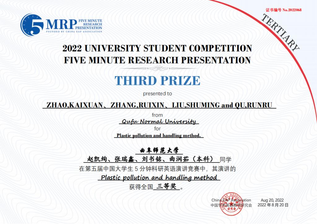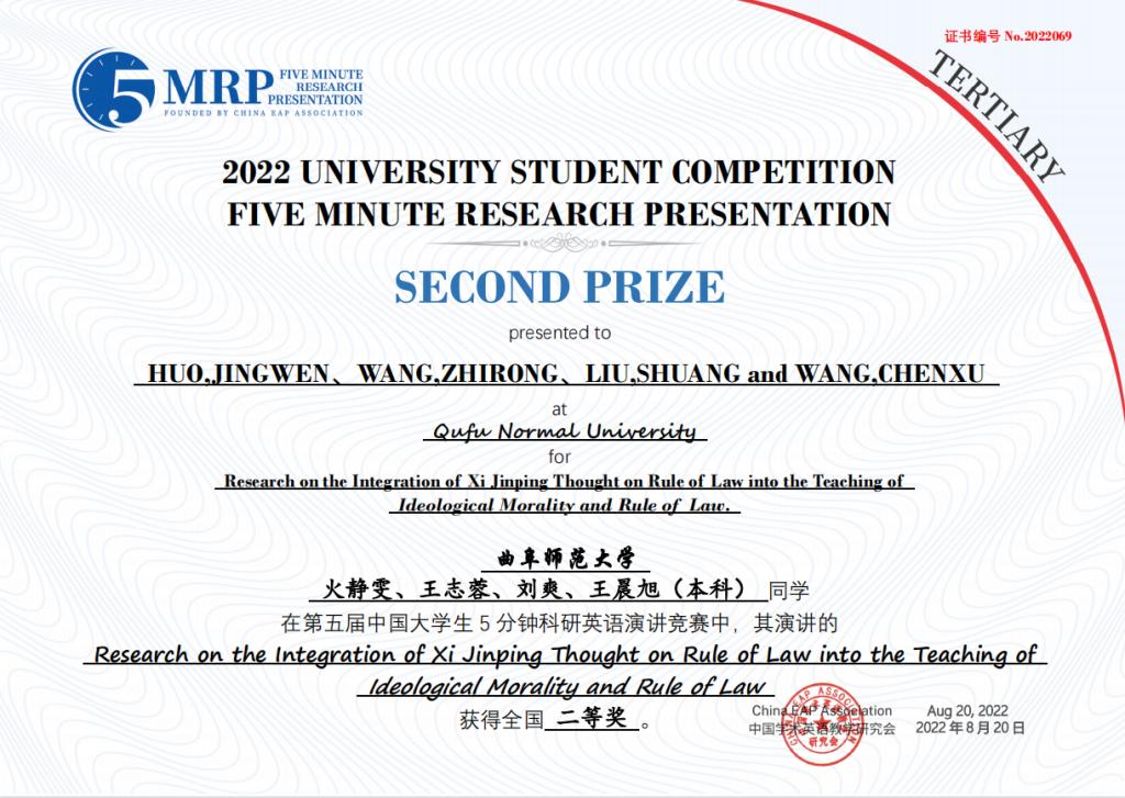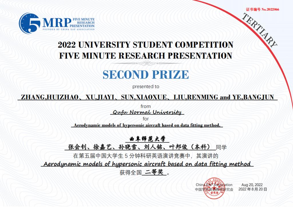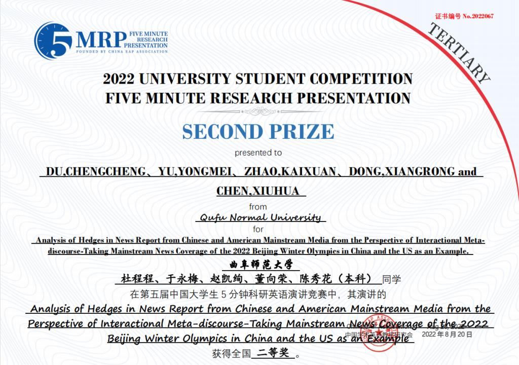 附2:第五届中国大学生五分钟科研英语演讲大赛时博网页版页面登录_时博(中国)获奖团队获奖证书