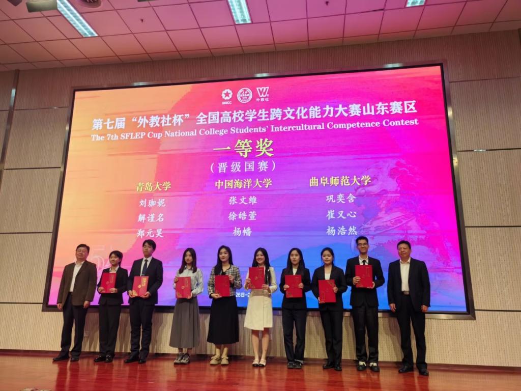 10月25-27日,由山东省本科教育通用外国语种类专业教学指导委员会、山东省本科教育大学外语教学指导委员会和上海外语教育出版社主办的第七届“外教社杯”全国高校学生跨文化能力大赛山东赛区决赛在青岛大学成功举办。