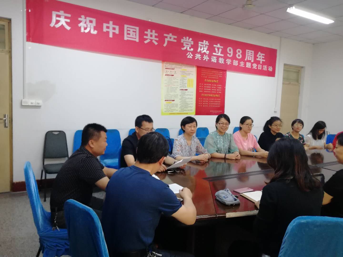 6月26日下午,公共外语教学部时博网页版页面登录_时博(中国)党支部召开主题党日活动,庆祝中国共产党成立98周年,党日活动由支部书记王广成主持,全体党员参加。会上,王广成带领全体与会党员重温了入党誓词,全体党员认真学习领会了习近平总书记“不忘初心、牢记使命”的理论内涵和实践要求,进一步明确了“守初心、担使命,找差距、抓落实”的总体要求。全体党员面对国旗、党旗,庄严宣誓,重温入党誓词,永葆入党初心。同时,支部副书记刘成干结合实际,围绕“不忘初心、牢记使命”主题带头讲授了党课,要求全体党员、全体教师要坚决维护核心,对党忠诚,聚焦贯彻落实以习近平同志为核心的党中央的各项决策部署和精神,为促进学校大学英语改革发展而担当有为。其次,围绕本次民主生活会,党员同志就发扬民主、教学促进等进行了热烈的讨论。