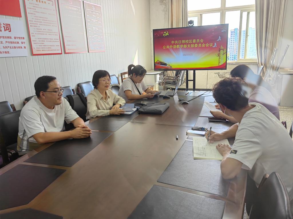 9月21日,公共外语教学部日照党支部在JC1002会议室召开党员大会,学习习近平致全国优秀教师代表的信并进行支部委员会换届选举工作。