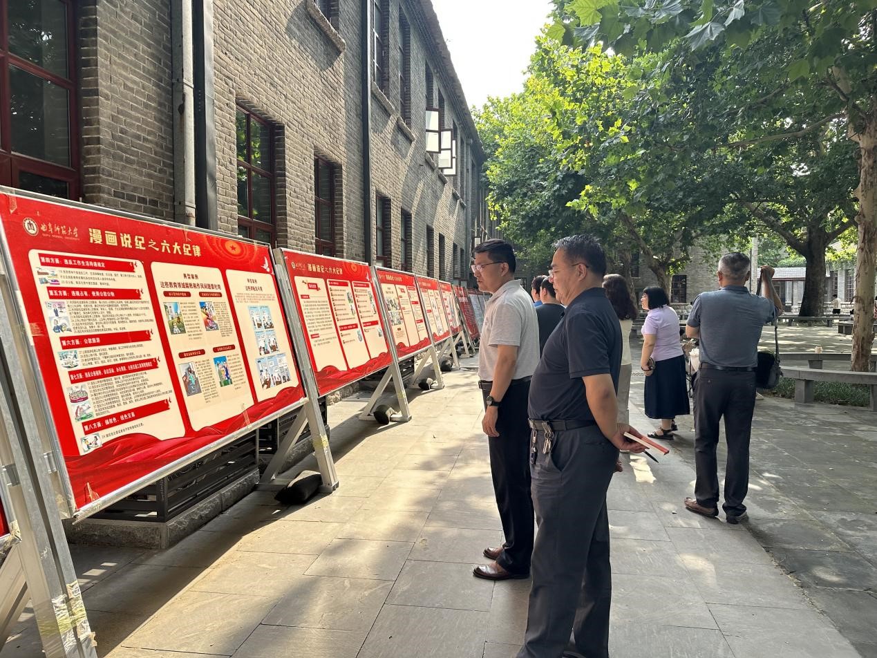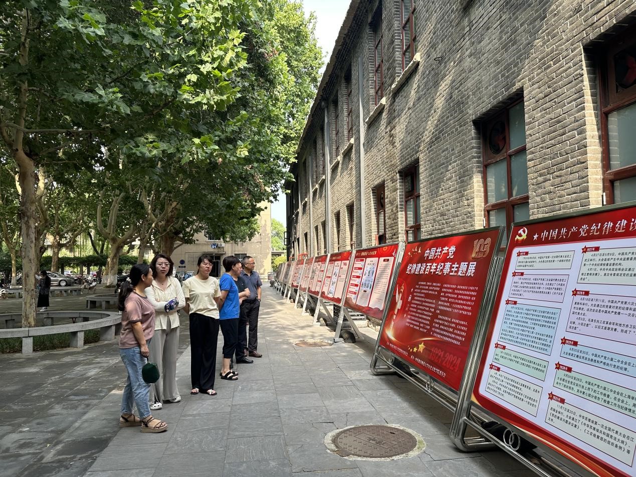 7月3日下午,时博网页版页面登录_时博(中国)党支部全体党员来到西联教室前广场,参观“漫画说纪之六大纪律”主题展与“中国共产党纪律建设百年纪事”主题展。