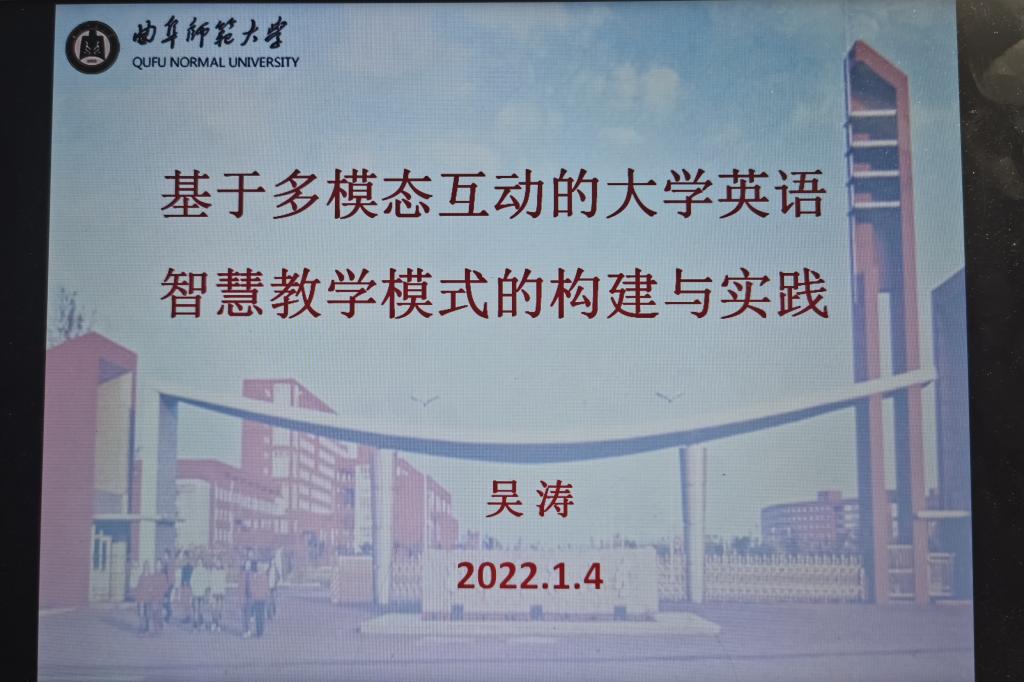 为进一步推广大学英语教学改革的先进经验和典型做法,1月4日,公共外语教学部举办大学英语教学研究沙龙,本次活动通过视频会议形式在两校区同步进行。本期教学研究沙龙共有4个主题,分别由孙海珊、董伟、吴涛、衣进韬等4位老师就各自的业务专长及其近期取得的成果做了汇报与展示,此次沙龙由基础教研室(日照校区)主任张英主持。