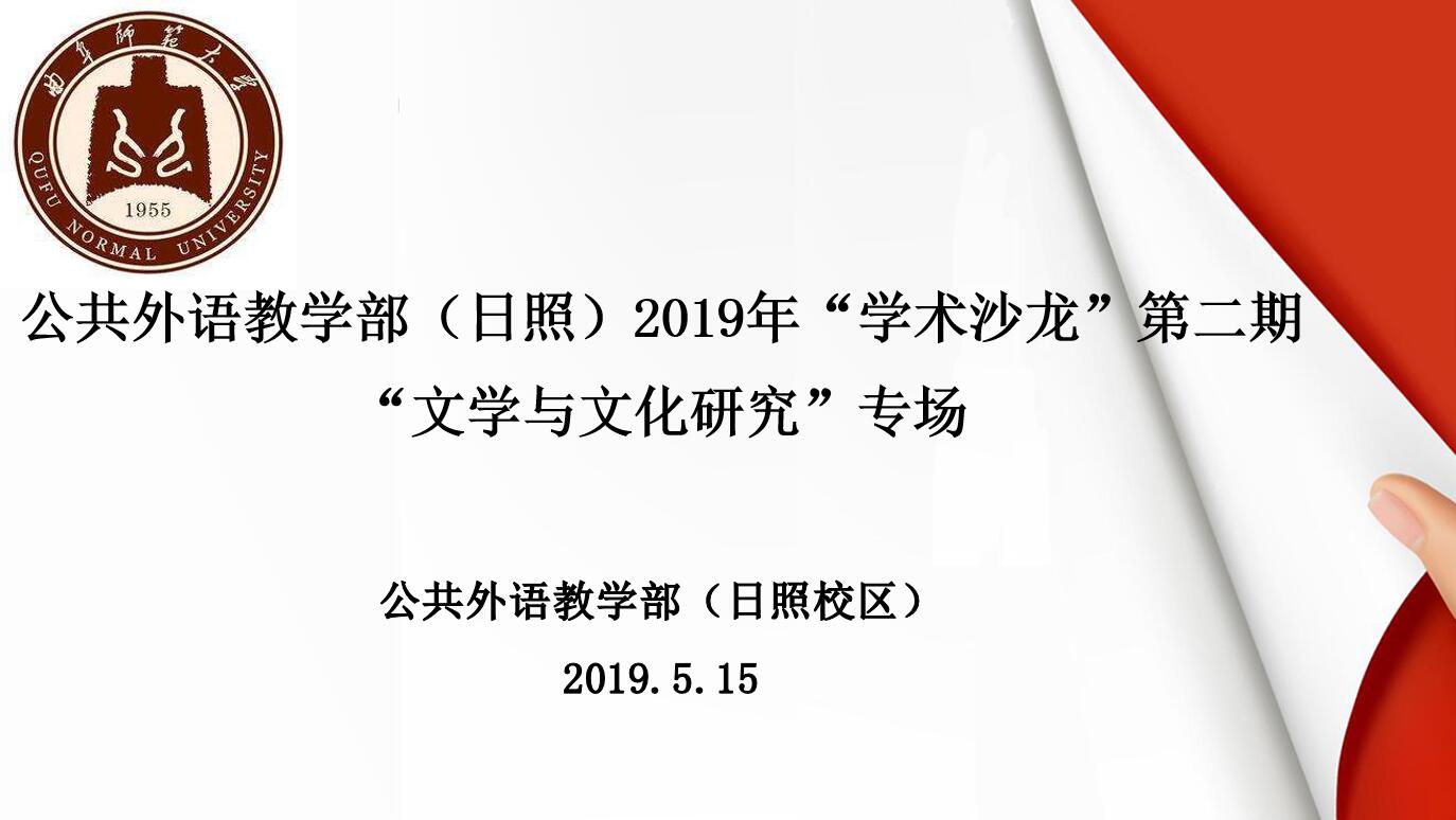 5月15日下午,公共外语教学部2019年第五期“学术沙龙”在日照校区JC1002会议室举行。本期沙龙主题为文学与文化研究。沙龙活动由衣进韬老师主持。