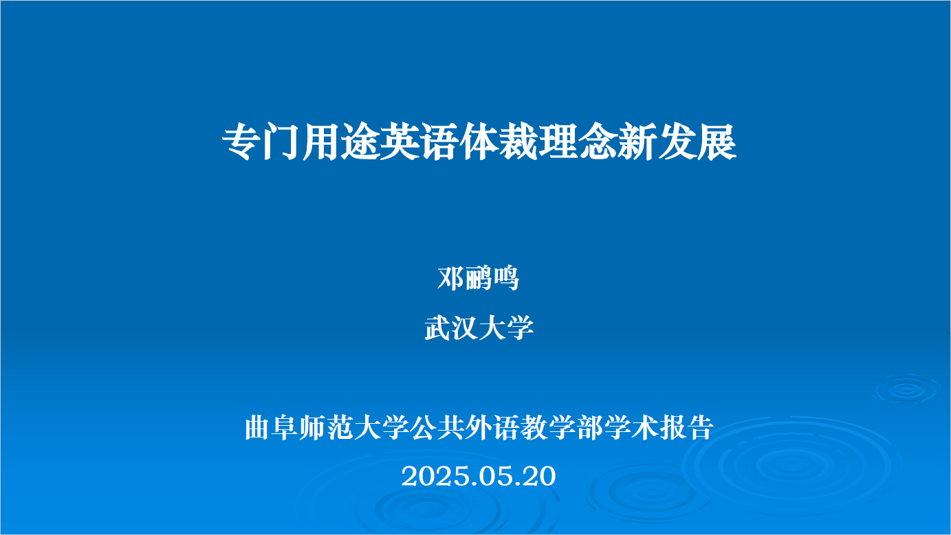 2025年5月20日下午,时博网页版页面登录_时博(中国)公共外语教学部举办70周年校庆系列学术活动暨博雅讲坛第八场。武汉大学邓鹂鸣教授应邀作题为“专门用途英语体裁理念新发展”的学术报告,公共外语教学部全体教师参加活动。