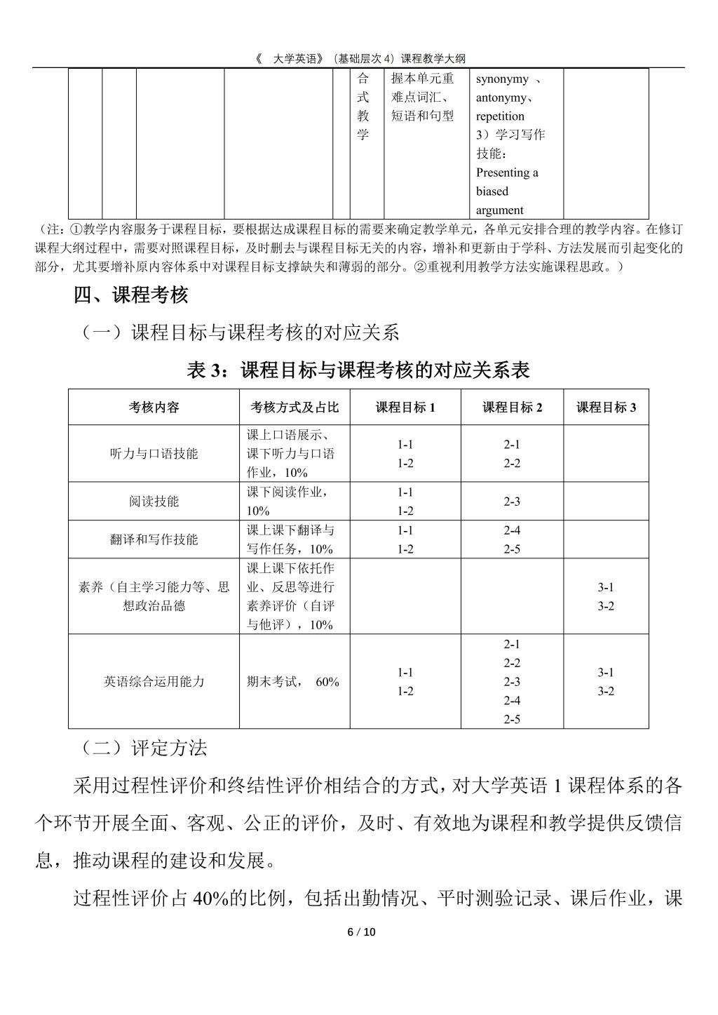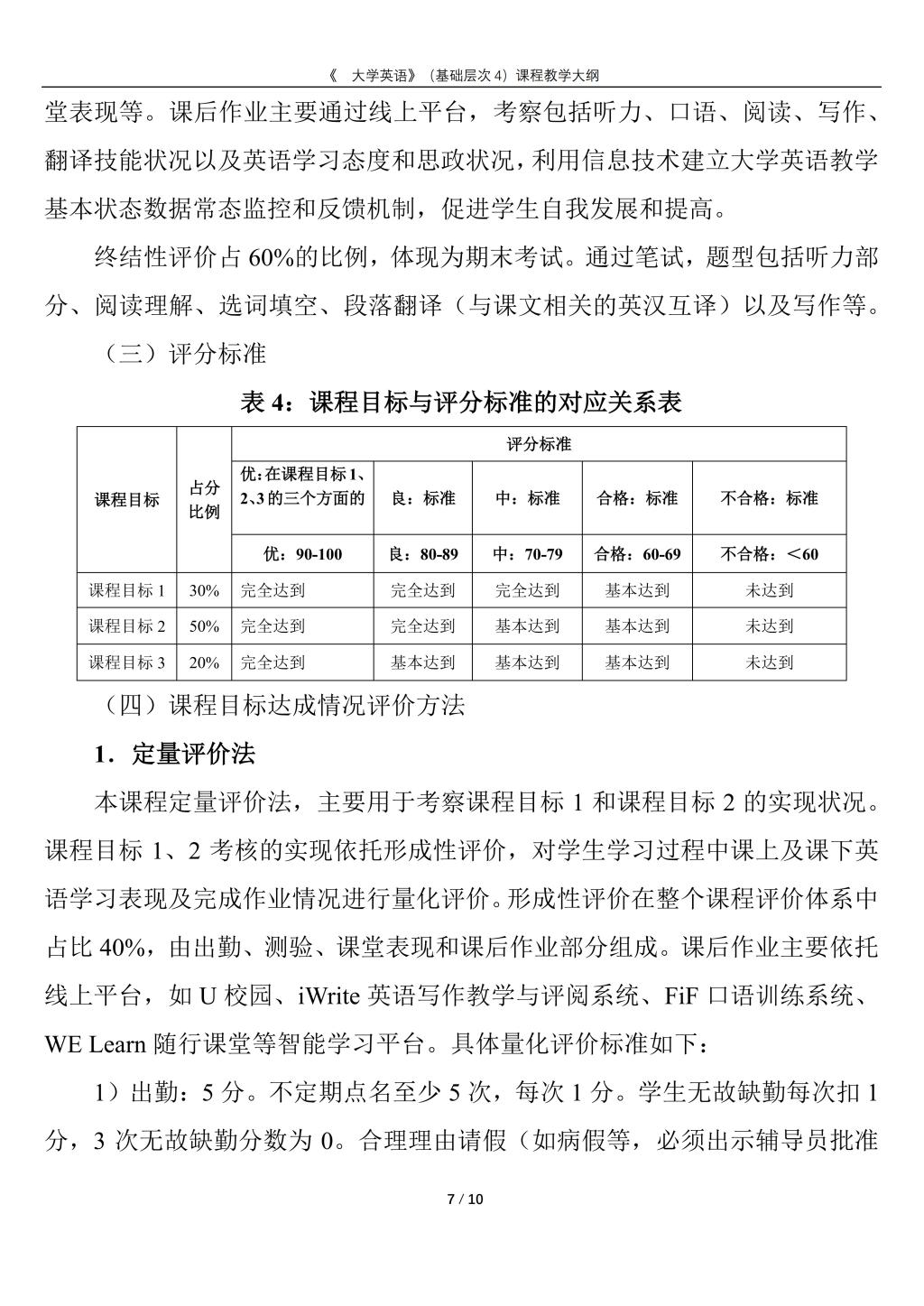 大学英语(普通类基础层次4)课程教学大纲(2022版)
