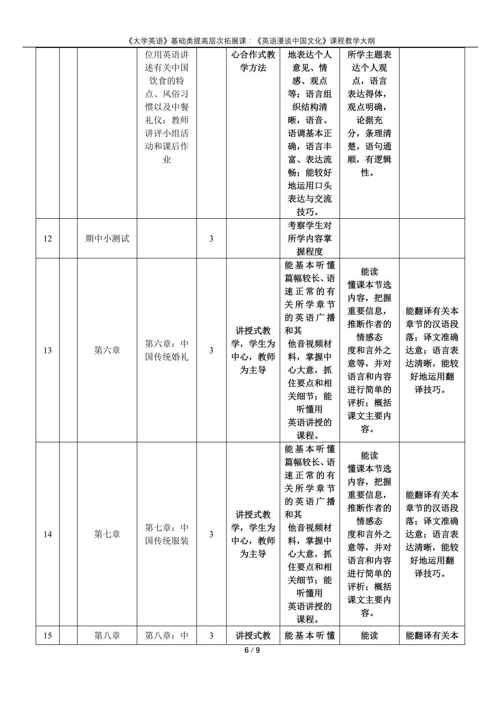 大学英语(普通类提高层次拓展课:《英语漫谈中国文化》)课程教学大纲(2022版)