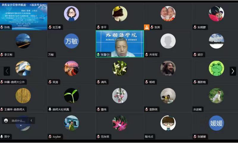 7月19日上午,公共外语教学部邀请我校优秀校友、南京林业大学外国语学院副院长、张鲁宁教授作“大学英语一流课程建设”线上专家报告会。报告会由副主任孙伟主持,主任王福祥、各教研室主任、各课程建设团队负责人及其全体骨干成员参加。