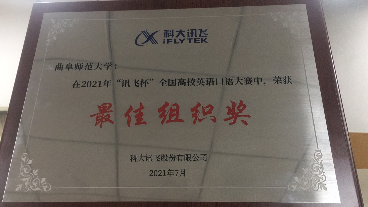 中国共产党成立100周年之际,为回顾党的奋斗历史,继承和发扬党的光荣传统,加强高校意识形态建设,丰富高校党建活动的形式,科大讯飞高教产品线特别策划主题赛事活动,以激发大学生的历史责任感、使命感和荣誉感,展示当代大学生有理想、有本领、有担当的精神风貌。在5月24日-6月15日举办的2021年“讯飞杯”全国高校英语口语大赛山东赛事中,公共外语教学部积极筹备,发动学生参赛,取得了山东赛区比赛规模和参赛人数和获奖人数第一名的好成绩。本次大赛中,山东省口语大赛开通赛事权限高校51家,有比赛数据的43家,17000名同学参与,约9000人完成赛事,我校921名同学参加,89名同学获奖,其中特等奖1名、一等奖1名、二等奖4名、三等奖17名,优秀奖41名,相应教师获得“优秀指导教师”奖。时博网页版页面登录_时博(中国)公共外语教学部获得“最佳组织奖”称号。