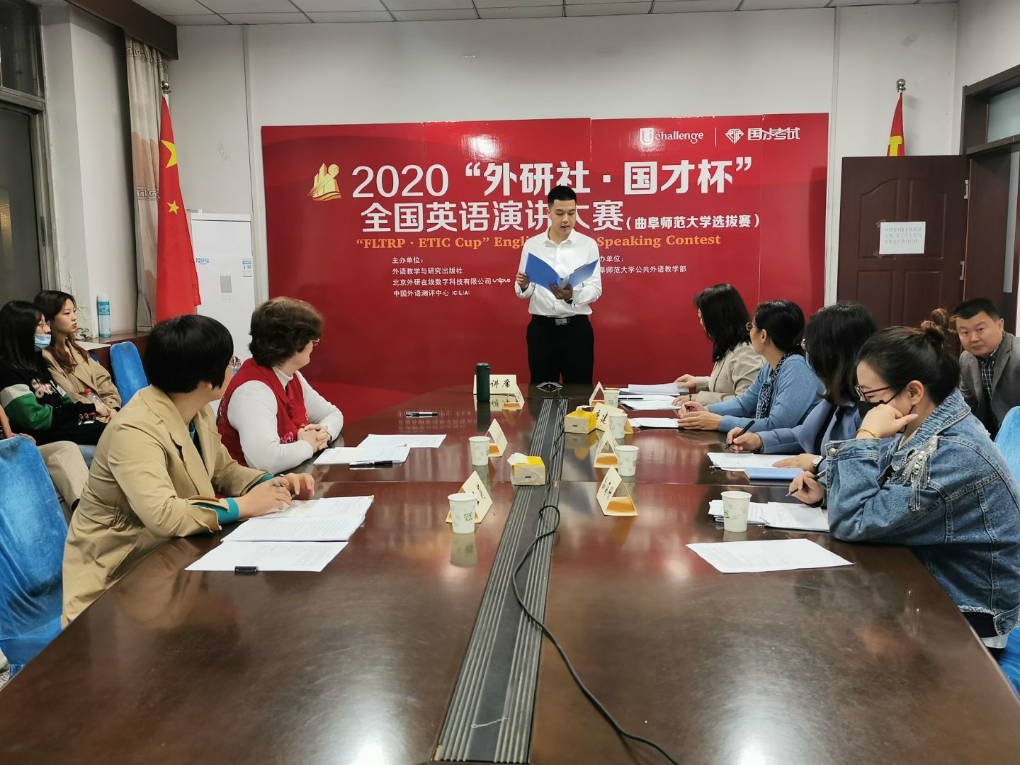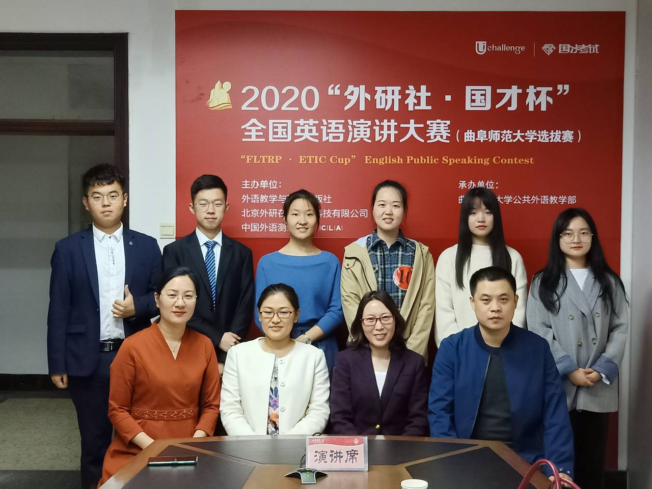 1017日,2020“外研社·国才杯”英语演讲大赛校园选拔赛正式拉开了帷幕。此次大赛由公共外语教学部主办,外国语学院、翻译学院协办。大赛采用视频网络直播方式,日照和曲阜两校区以视频的形式同时进行。在两校区的通力合作,师生的积极参与与配合下,本次比赛取得了圆满成功。