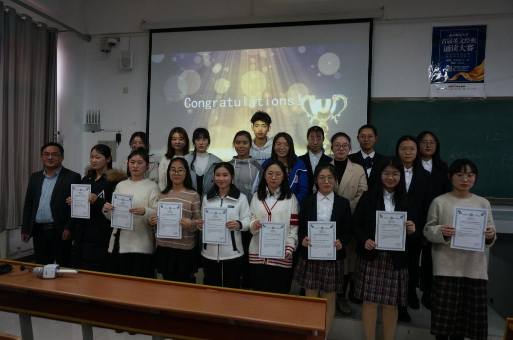 以诵读感悟经典,用读书修炼身心。12月8日下午,由公共外语教学部主办,曲园学术英语社团承办的我校首届英文经典诵读大赛决赛于日照校区顺利举办。来自不同专业、不同年级的200余名学生报名参加比赛,经层层选拔,最终共有14组参赛队伍共计28人晋级决赛。