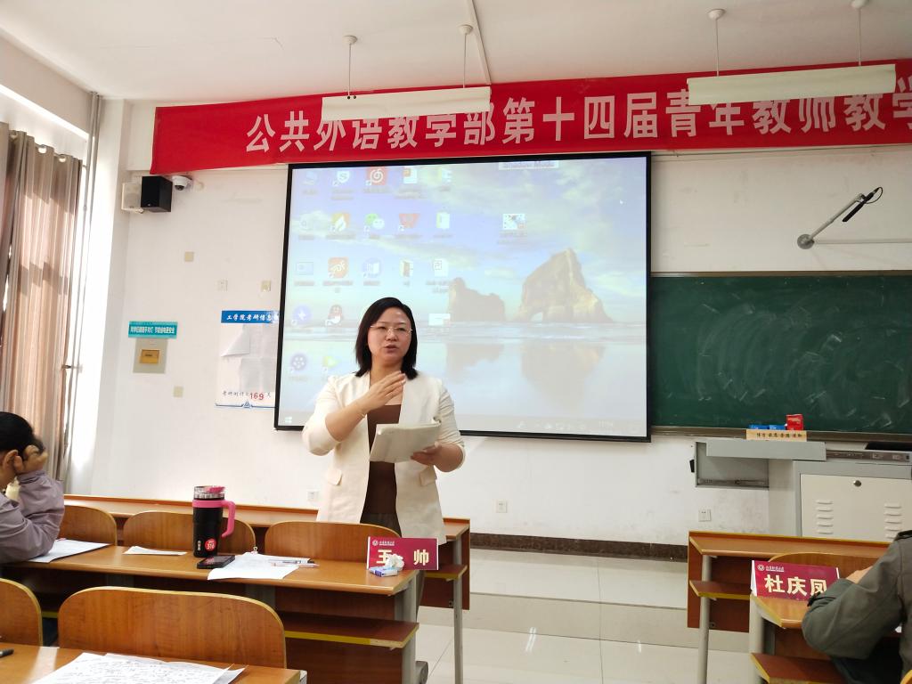 10月21日,公共外语教学部在日照校区JS105教室成功举办第十四届青年教师教学比赛公共外语教学部初赛。本次比赛根据学校教务处《关于举办时博网页版页面登录_时博(中国)第十四届青年教师教学比赛的通知》精神要求组织实施,以锤炼青年教师教学基本功,提高教师队伍整体教学水平,促进师德师风建设为目标。共有10名青年教师报名参加本次比赛,翻译学院副教授王帅、公共外语教学部副教授杜庆凤、仲蕾、弭宁、曹爱萍担任本次赛事评委,全体教师全程观摩了本次赛事。