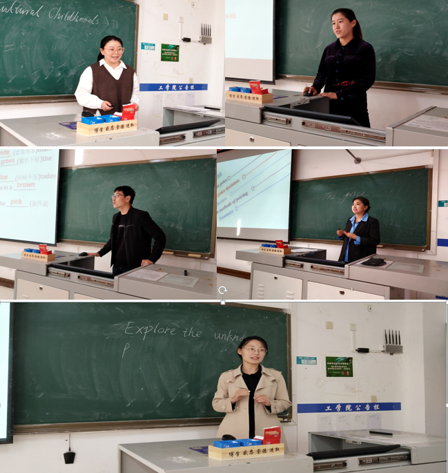 在比赛过程中,参赛教师思想态度端正、精神饱满、热情充沛,教学思路清晰,新媒体技术运用娴熟,课件图文并茂,语言风趣幽默,内容讲解深入浅出,课堂教学效果突出;展现了我校公共外语青年教师队伍基本功扎实、大胆创新、高质高效的大学英语教学业务素质和积极向上、乐观进取的精神风貌。最终,张玉凌、齐珍、裴沛、张宝换、门超元、乔松等6位老师荣获三等奖;牟晓、朱晓蒙、李梦实等3位老师荣获二等奖;王瑾荣获一等奖。