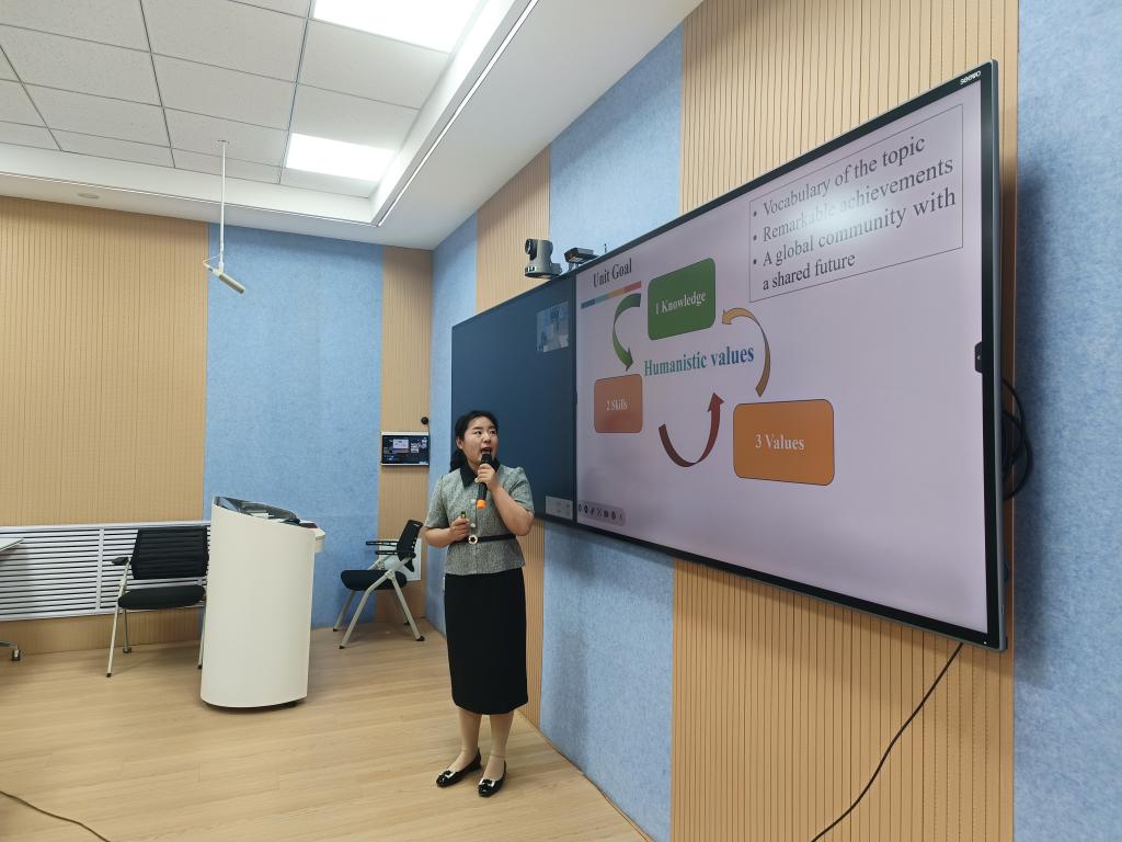 根据赛事通知,此次比赛要求参赛教师首先进行 3 分钟左右的教学综述,阐述对授课素材的整体教学设计,展示教学目标设定与实施的逻辑关系,随后的课堂授课时间针对教学设计中的某一具体板块进行教学展示。牟晓老师选取了外教社《传播中国》教材中的Prosperous China 一文,在综述环节,她条理清晰地讲解了教学设计思路,在课堂授课时,通过生动的案例、多样的互动方式,充分调动学生积极性,将知识点讲解得深入浅出,学生们踊跃参与课堂讨论,展现出良好的学习热情。汪娟老师则以AI Technology and the Future of Education为素材,在 3 分钟的综述里,清晰地说明了教学目标和教学方法的选择,在后续的课堂教学中,她借助精心制作的教学课件,巧妙引导学生思考,课堂氛围活跃,充分体现了以学生为中心的教学理念。