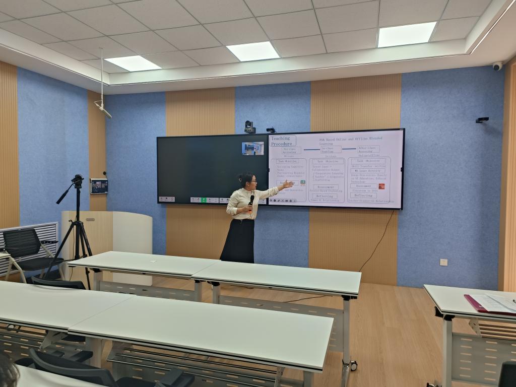 57日,公共外语教学部围绕第十六届 “外教社杯” 全国高校外语教学大赛初赛,开展了以 “以赛促教” 为主题的集体研训活动。活动中,牟晓和汪娟两位老师进行了精彩的讲课展示,公共外语教学部全体老师观摩并担任此次比赛评委。
