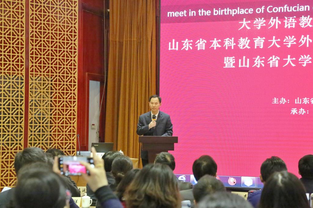 12月21日,山东省本科教育大学外语教学指导委员会第一次全体会议暨山东省大学外语教育专业委员会年会在曲阜隆重召开。教育部高等学校大学外语教学指导委员会委员、广东外语外贸大学副校长刘建达教授,教育部高等学校大学外语教学指导委员会委员、山东省大学外语教育专业委员会会长崔校平教授应邀出席大会,来自山东省本科院校的100余位大学外语负责人、专家学者以及出版专家欢聚一堂,共同探讨大学外语发展。我校副校长辛杰教授出席大会并讲话。山东省本科教育大学外语教学指导委员会主任委员、公共外语教学部主任王广成教授主持了本届年会。