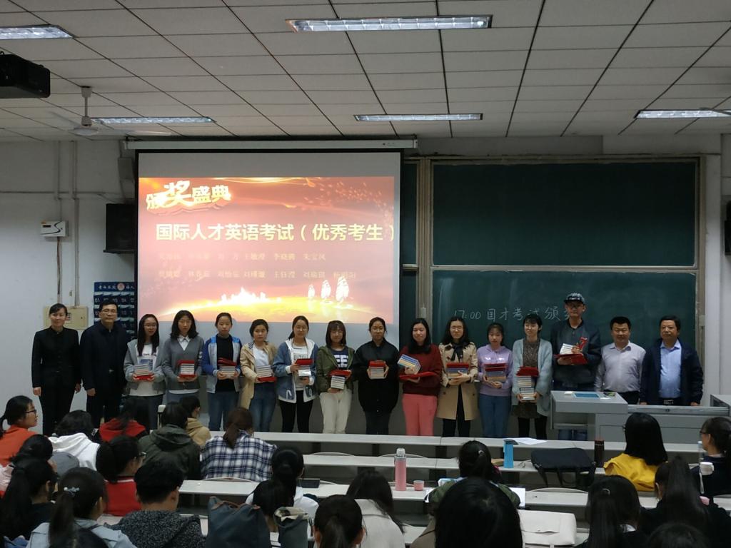 春风和煦,阳光明媚,承载着希望和收获,3月27日下午,公共外语教学部在综合楼506教室隆重召开国际人才英语(国才)考试表彰大会,表彰2018年11月国才考季中获得优秀等次的学子。300余名上季考生济济一堂,共同庆祝这激动人心的盛会。公共外语教学部主任王广成、主任助理王显明,济宁高新外商服务有限责任公司项目总监常弘、行政部经理马丽、科苑项目经理吴静,北京外国语大学外语教学与研究出版社区域经理李洪旺共同出席了颁奖盛典。大会由公共外语教学部主任助理王显明主持。
