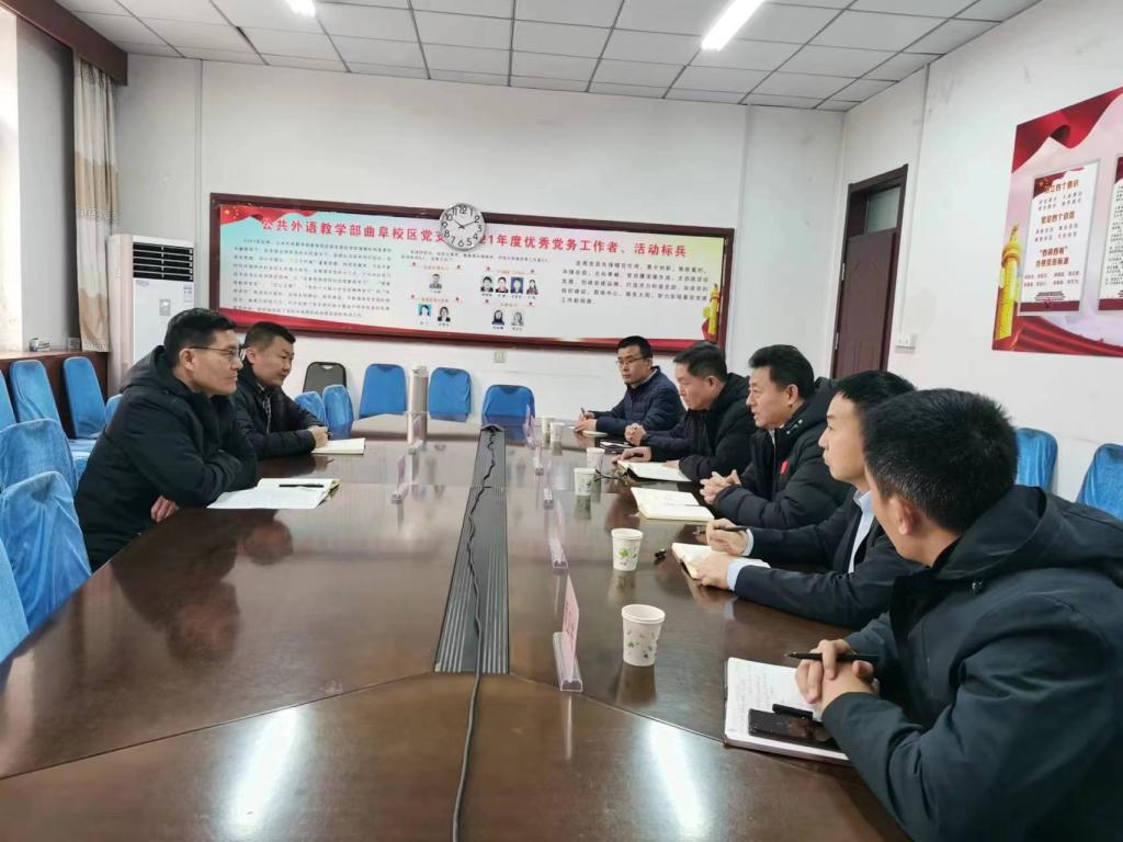2月13日,新学期开学第一天,党委常委、副校长纪洪涛来时博网页版页面登录_时博(中国)调研指导工作。国内合作处处长孔宪福、人才工作处处长徐新农、基建处处长冯德祥、保卫处处长颜卫东以及研究生处副处长王其涛陪同调研。公共外语教学部主任王福祥、副主任王显明做工作汇报。调研会议由王福祥主持。
