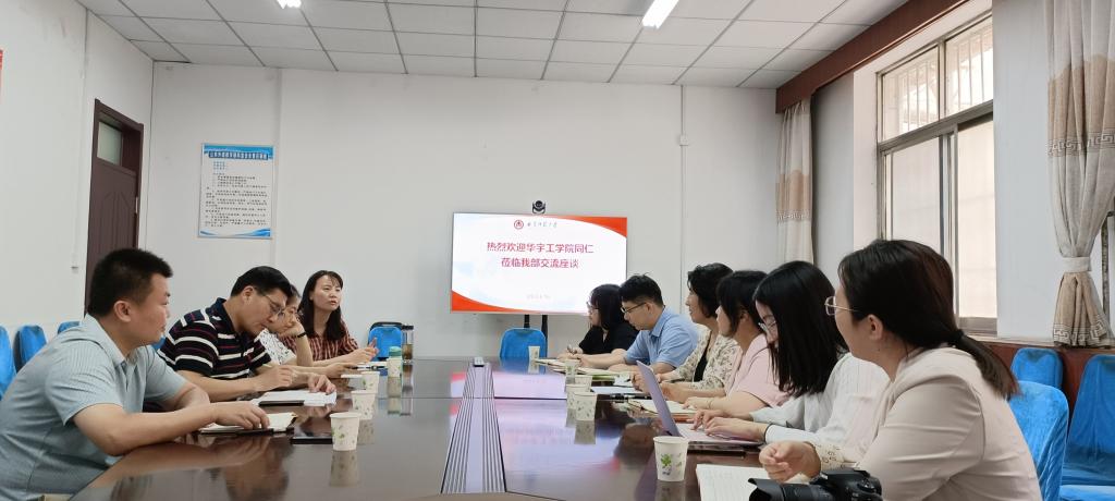6月16日,山东华宇工学院基础教学部主任刘瑞平教授一行来时博网页版页面登录_时博(中国)交流访问。公共外语教学部主任王福祥、副主任王显明在一楼会议室召开座谈会。两院部分骨干教师参加座谈。