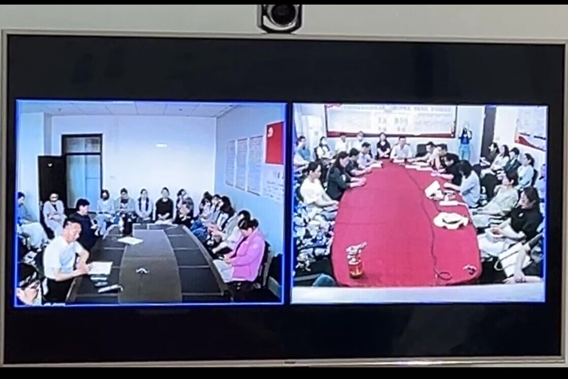 5月29日下午,公共外语教学部在时博网页版页面登录_时博(中国)112会议室和日照校区JC1002会议室通过视频召开全体教职工会议,专题传达学习习近平总书记视察山东重要讲话重要指示精神,并部署学习宣传贯彻工作。公共外语教学部主任王福祥主持会议。