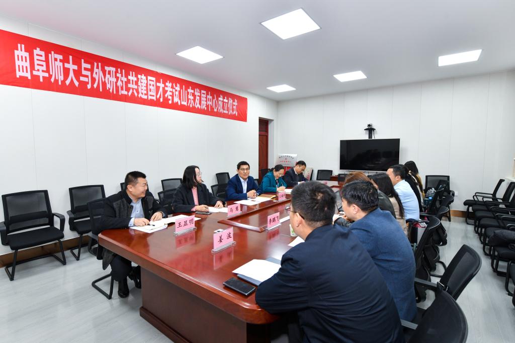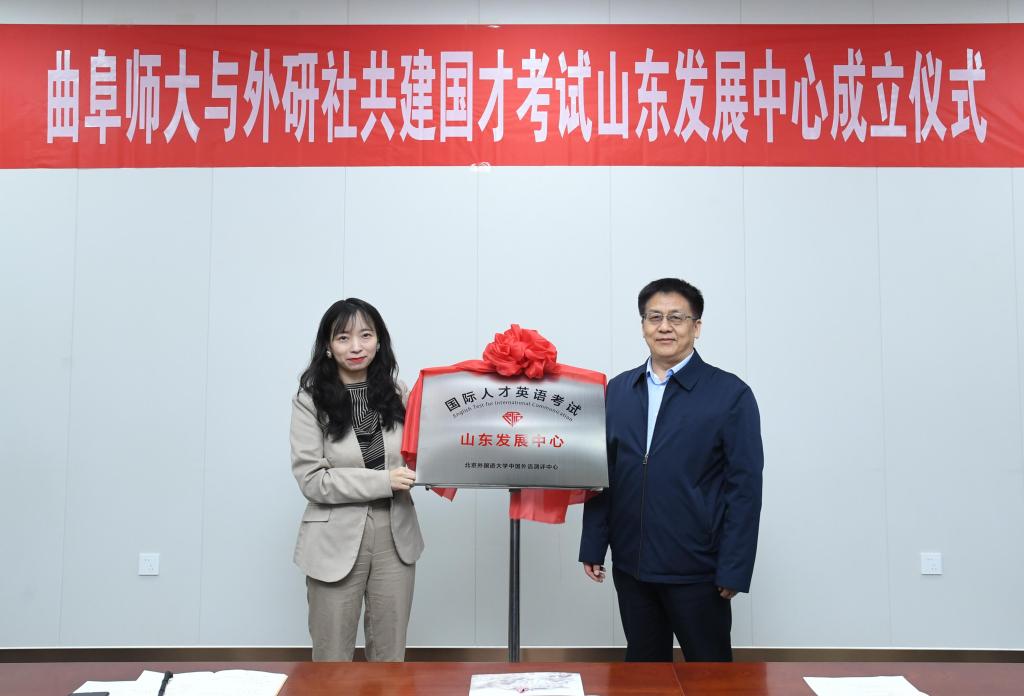 仪式上,胡凡刚副校长与冯涛总经理共同为“国际人才英语考试山东发展中心”揭牌,曲师大教务处处长李傅山与外研社高等营销中心华东大区总经理李洪旺为“时博网页版页面登录_时博(中国)国际人才培养基地”揭牌。两大平台的成立,将为山东省高校国际化人才培养提供重要支撑。